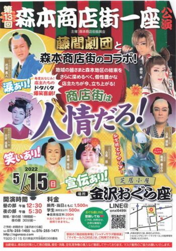 金沢市の大衆演劇場、金沢おぐら座には2015年の正月明けに南條光貴劇団の公演を身に行ったことがある。おぐら座のある場所は金沢市内と言っても、兼六園などの観光ポイントのある金沢中心部から二駅離れたところにある森本駅前で、観光地の活気とは無縁のが…